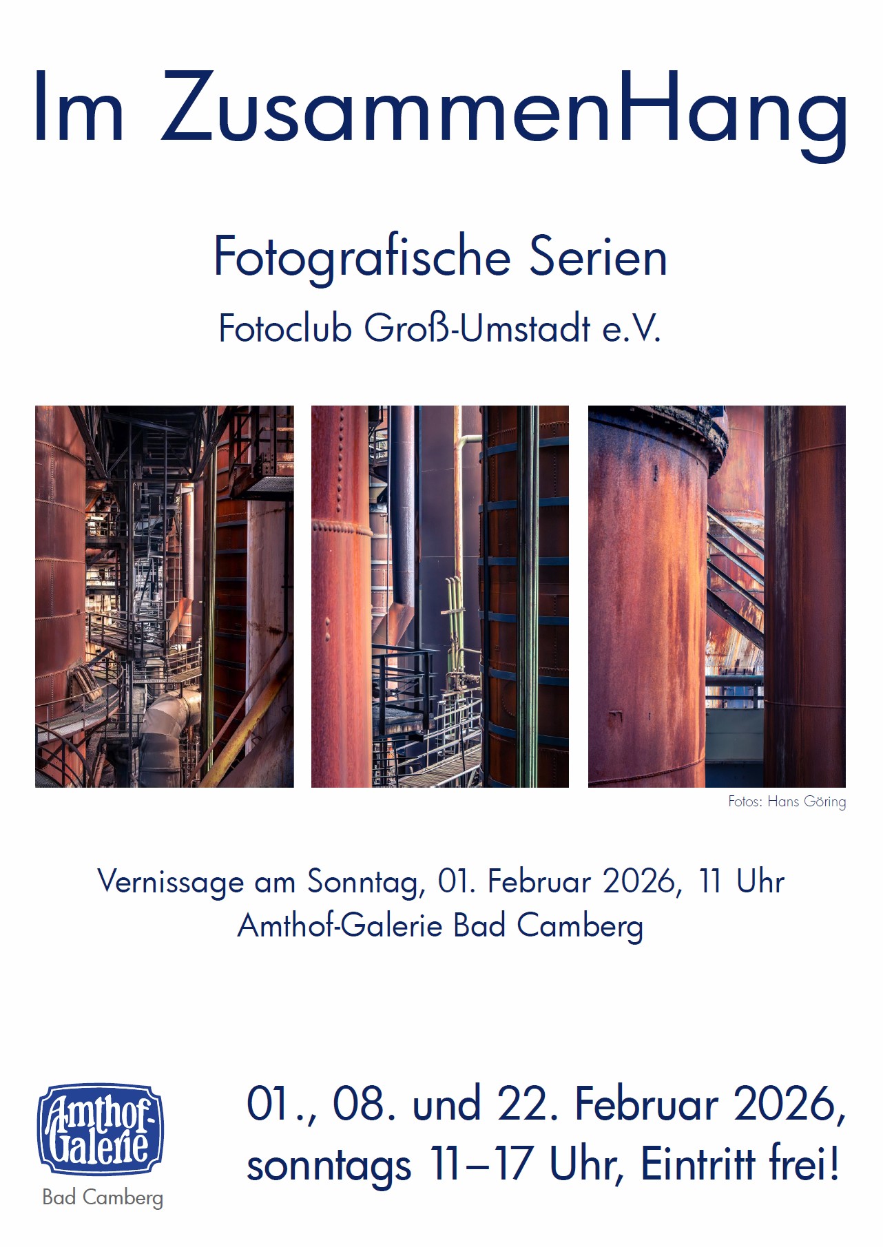 Die Ausstellung Im ZusammenHang des Fotoclub Groß-Umstadt, geht auf Reisen. An drei Sonntagen im Februar zeigen wir unsere Bilder in der Amthof-Galerie in Bad Camberg.